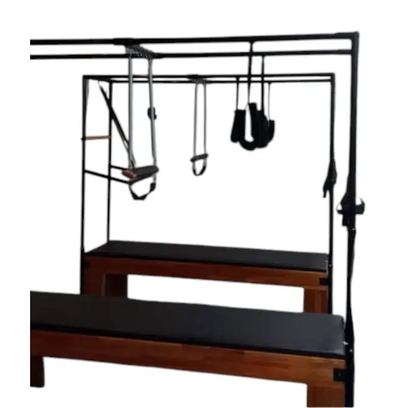 Diseñado para profesionales y estudios de Pilates, este Cadillac ofrece múltiples posibilidades de trabajo corporal, desde estiramientos profundos hasta ejercicios de resistencia y control postural.