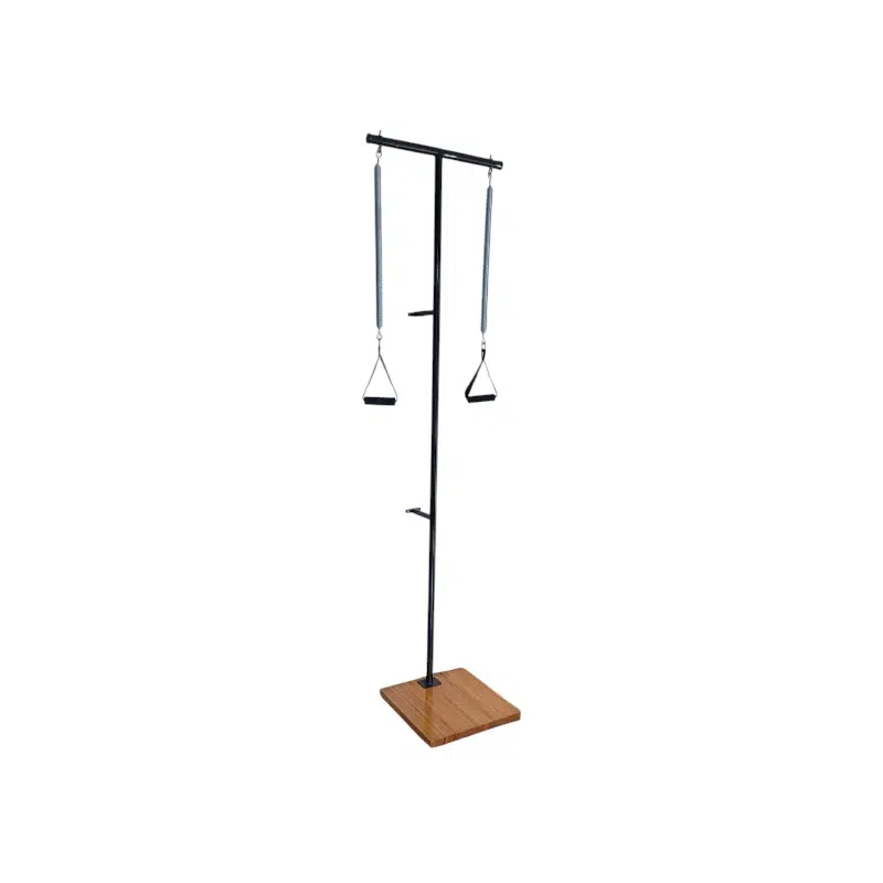 El Ped-o-Pull Vivencia Pilates es un equipo tradicional del método, diseñado para trabajar la alineación corporal, la fuerza del tronco y la estabilidad postural. Su estructura vertical con resortes ajustables permite realizar ejercicios que desafían el equilibrio y mejoran la coordinación, ofreciendo una experiencia intensa y precisa.